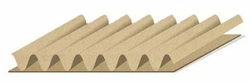 Двошаровий гофрокартон складається з одного ребристого і одного плоского листа. Матеріал має хорошу міцність і гнучкість, завдяки чому широко застосовується для обгортки товарів і в якості амортизуючих вкладишів в коробках.